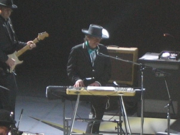 Et puis il tourne (le site officiel ou, mieux les boblinks) : mais pourquoi un musicien, plus qu’un auteur, s’arrêterait à 68 ans ? Ce qui est étrange, c’est de se demander quelle idée il en a, lui, de ce vieux monde qui hante ses chansons : à jouer plus de cent ou cent trente fois dans toutes ces villes dont il doit à peine être conscient du nom, depuis le fond du Michigan (Rothbury, le 5 juillet) jusqu’à une nuit venteuse du Canada en hiver, et là, ce début d’avril arpentant l’Europe et deux soirs à Paris ?