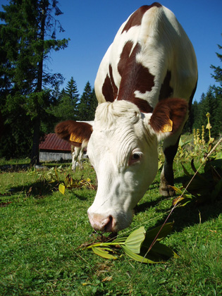 J’aurais photographié quoi ? Oui, ces trois-là, qui étaient si marrantes. Elles se ressemblent par une légère dépression du front, vers le rejointement des yeux, et par un toupet insolent sur le haut. Chacune des 400 Holstein a ce petit toupet, et on peut passer 100 fois devant des vaches au pré sans aller remarquer leur toupet. Seulement voilà : quand 3 toupets sont strictement identiques, croyez qu’on le remarque. Ça aurait fait une super photo, sûr. Les taches blanches et les taches noires ne sont pas pareilles, sur les vaches clonées ? La donnée fixe, c’est le pourcentage de noir et de blanc. La surface noire de la vache est strictement la même sur les 3 clones – la distribution par contre en reste aléatoire.