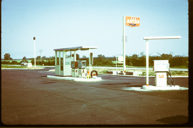 On a déménagé pour cette maison sur la côte, et lancé le garage neuf route de Poitiers, avec sa station-service Antar, deux distributeurs (super et ordinaire) plus un autre à l’écart pour les camions (diesel), et même encore le mélangeur deux temps pour les Mobylette, il est sur roulettes, le soir on le bascule et on le renferme dans la cabine. Comme c’est la première année, c’est tout neuf. Et, comme c’est la première année, il n’y a pas tant que ça de travail, on n’est pas sur une route nationale comme à Ruffec. Le trottoir ovale on l’appelle le « haricot » et la cabine au milieu c’est quatre vitres et une porte sur un assemblage de place, on y stocke les bidons d’huile ou autres marchandises de détail, et surtout « la caisse » (ça se prononce en un seul mot) qui devra le soir correspondre scrupuleusement au relevé des compteurs sur les trois pompes (plus le deux temps). Comme c’est l’été, je me souviens qu’il y a toujours au moins une mouche prisonnière de la chaleur des vitres et qui bourdonne.