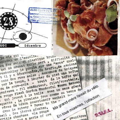 les dérivées / poème de Lucien Suel / troisième édition / ISBN 2 909834 35 2 / ISBN E 909834 03 4 édition originale, 1992, ISBN 2 909834 18 2 seconde édition 1995 / 144 exemplaires numérotés de 289 à 432 / accompagnés d’un collage instantané de l’auteur / achevé d’imprimer le 12 janvier 2004 à 12h . exemplaire n° 00311 / Station Underground d’Emerveillement Littéraire...
