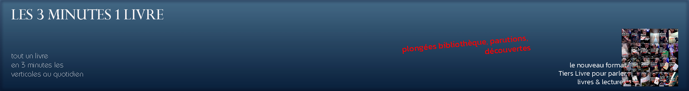 • François Bon sur YouTube, «les carnets » projets Balzac & Lovecraft, l'atelier hebdo #boost, les carnets et lectures nouveau : la série « 3 minutes 1 livre » • les archives de la chaîne (2009-2021) les séries et ateliers, l'ensemble des rubriques et sommaires | ||