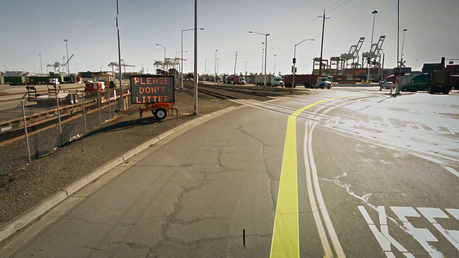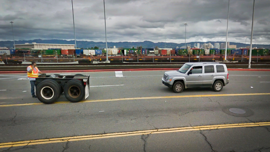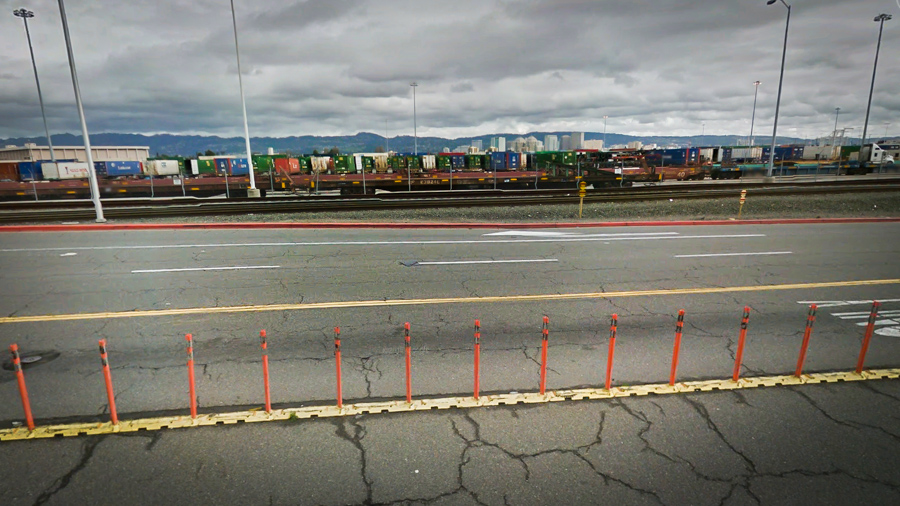 Pour moi, depuis sa découverte grâce à Eglantine C., le port d’Oakland tient ce rôle. Frustration en février, quand il pleuvait tant qu’on pouvait à peine sortir de la voiture, et que la moindre ornière pouvait noyer le moteur de notre toute petite bagnole louée.
