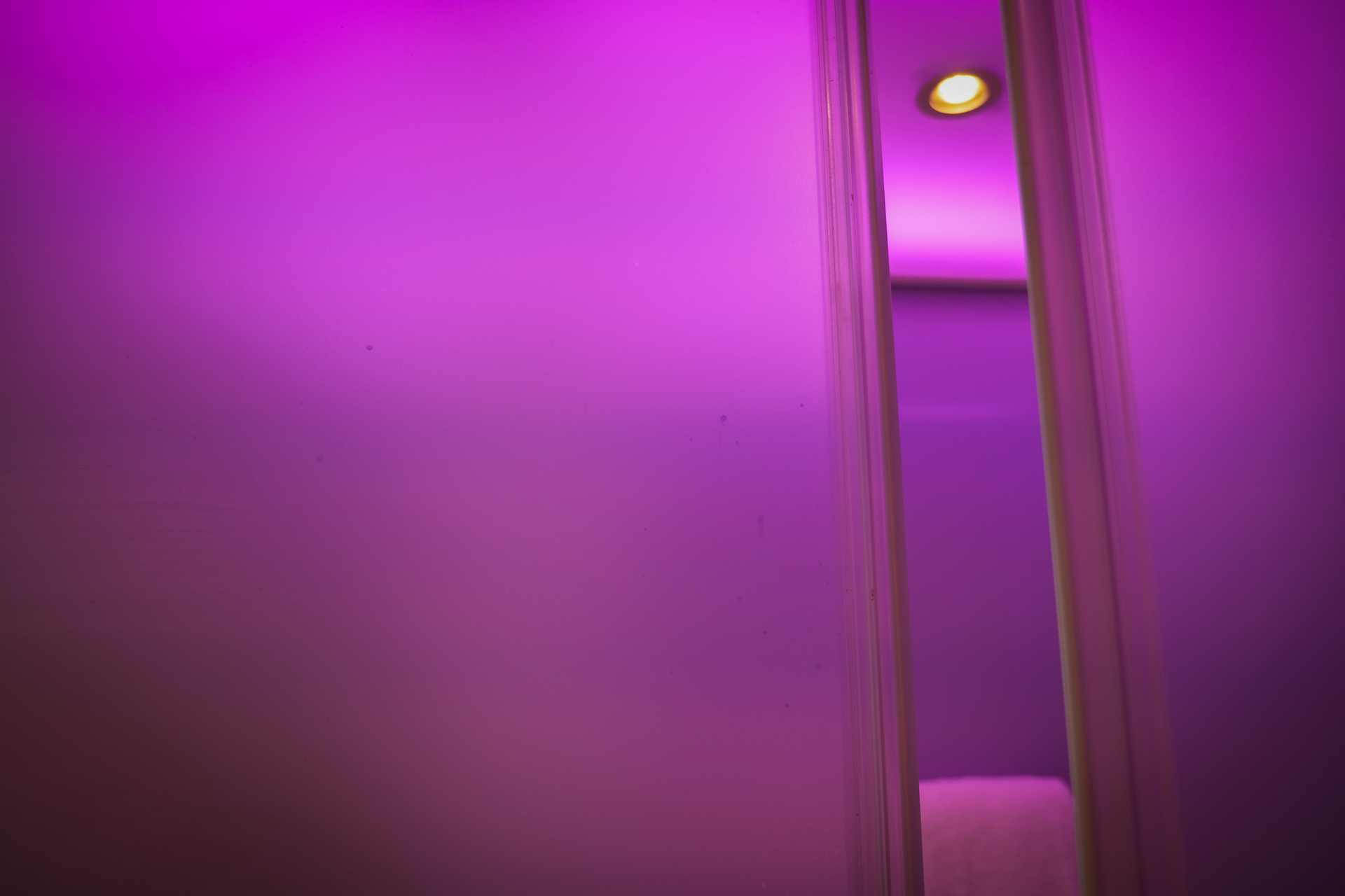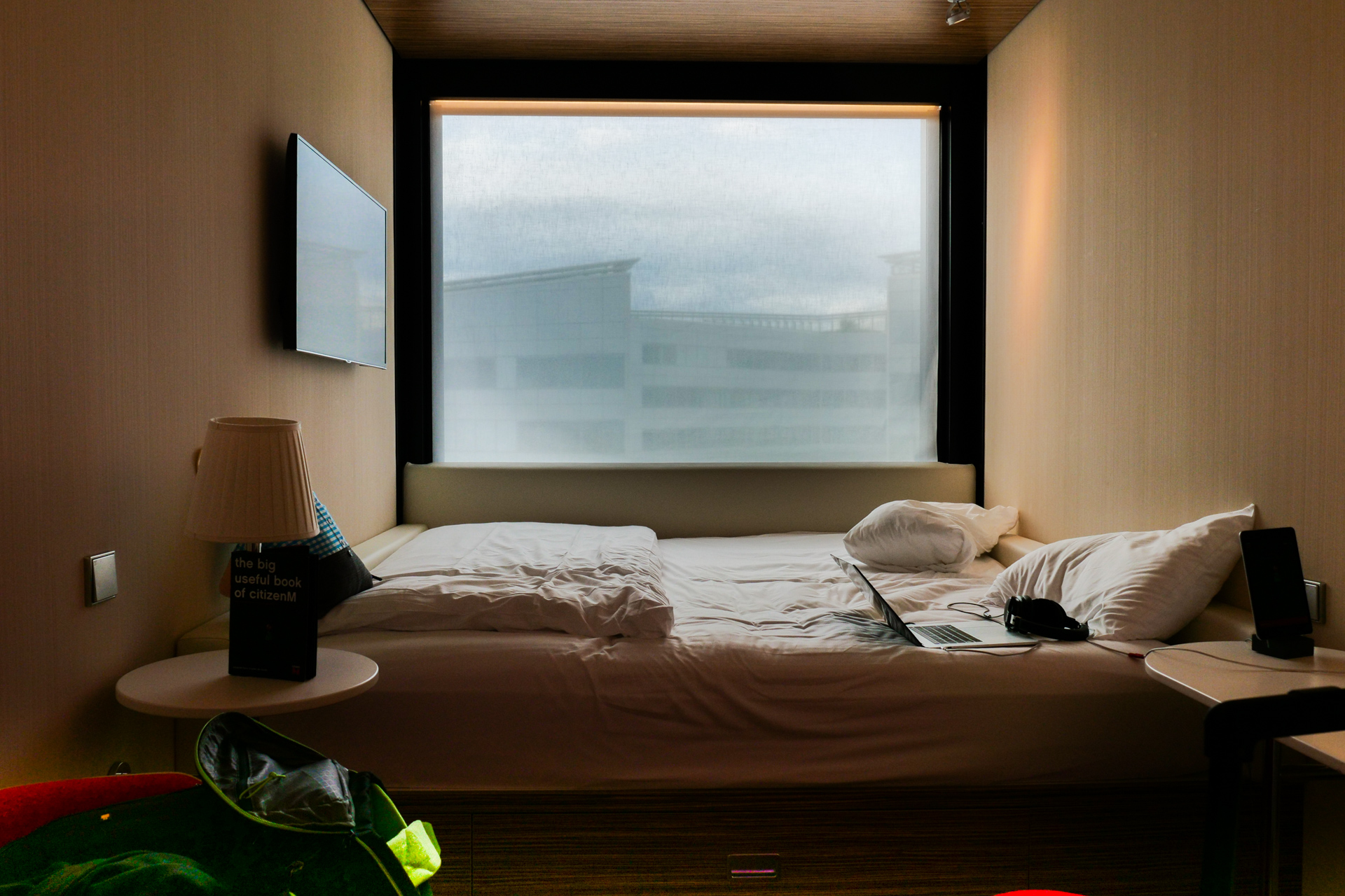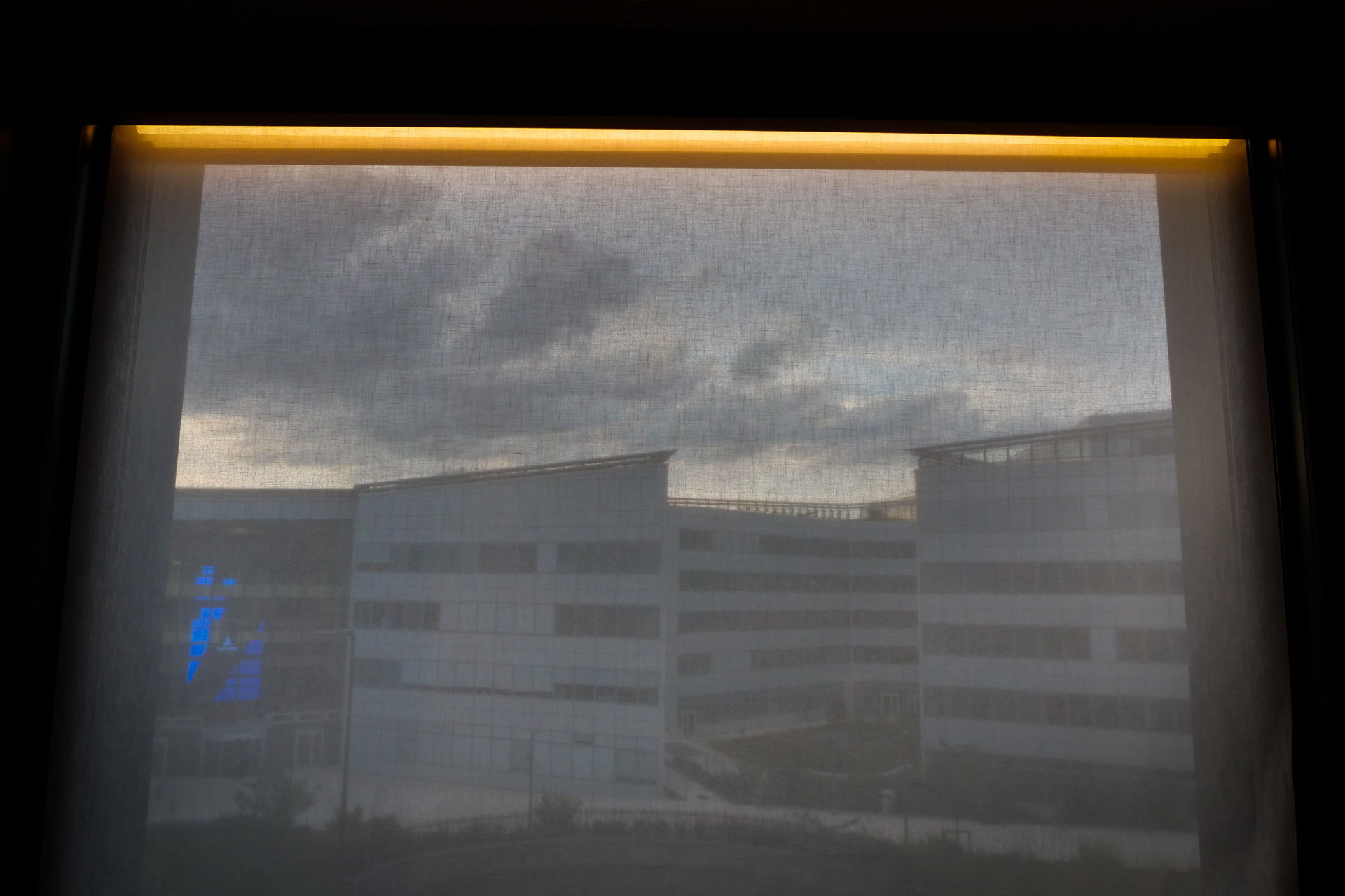 Toujours un peu spécial, dormir à Roissy, parce que ça fait partie de cette infinie latence des voyages en avion. Si ça part le matin, pour nous — de province — on doit venir la veille au soir. La grosse usine de l’Ibis se remplit comme la marée. Je suis au Citizen M, que j’ai eu pour moins cher sur Booking. Peut-être 4ème fois ? On entend vaguement les pistes, mais on ne les voit pas. Il faut passer par l’iPad pour allumer ou éteindre les lumières, baisser le rideau. Une fois au moins j’ai fait une vidéo, dans une chambre, la même, mais plus loin dans le couloir, ou dans le couloir d’au-dessous, ou dans le couloir d’au-dessus. Mais ce soir non. Je pourrais aussi traduire, ou recommencer la longue course des mails, mais non. Ce qui s’installe c’est ce temps distendu du voyage. L’attente du boulot de la semaine prochaine et comment ça va se passer : se rendre au-dedans disponible ? Alors je sais que les heures vont s"égrener comme demain elles s’engrèneront. Temps ralenti mais dont on ne souffre pas, puisque c’est soi-même, le ralenti tout entier. On macère les ondes de choc récentes. On macère les tenseurs dont on s’éloigne, non pas qu’on s’en déprend, mais eux aussi depuis cette très provisoire distension du temps. Je crois que c’est dans Je m’en vais d’Echenoz (ou son diptyque : Un an, je ne sais plus ?), qu’il y a ces pages sur le temps abruti de l’avion. J’ai chargé Les furtifs de Damasio dans le Kindle, et le dernier Connelly (en anglais, ça passe tout seul). Dans les avions d’Emirate on peut plus ou moins sortir l’ordi, là dans les navettes Montréal on ne peut pas trop bouger les coudes. J’ai dressé le pied devant ce miroir avec les lumières, mais l’énergie n’y est pas : tenir ce journal, c’est revenir au silence et à l’écrit, ça ne se décide pas, on s’obéit. J’aurais pu faire une vidéo plus béta, peut-être je vais la faire : ce qu’il y a dans mon sac, les livres que j’emmène pour les ateliers la semaine prochaine, mais ce serait déjà empiéter sur ce qui va se passer, au lieu d’arriver dans cette seule disponibilité. Peut-être que c’est à cause de cet inconfort des avions, qu’on commence le vide du voyage quelques heures avant, nous de province. Un autoportrait dans mes photos de la chambre : c’est quoi, la tête qu’on a, quand même la confiance est en attente ?
