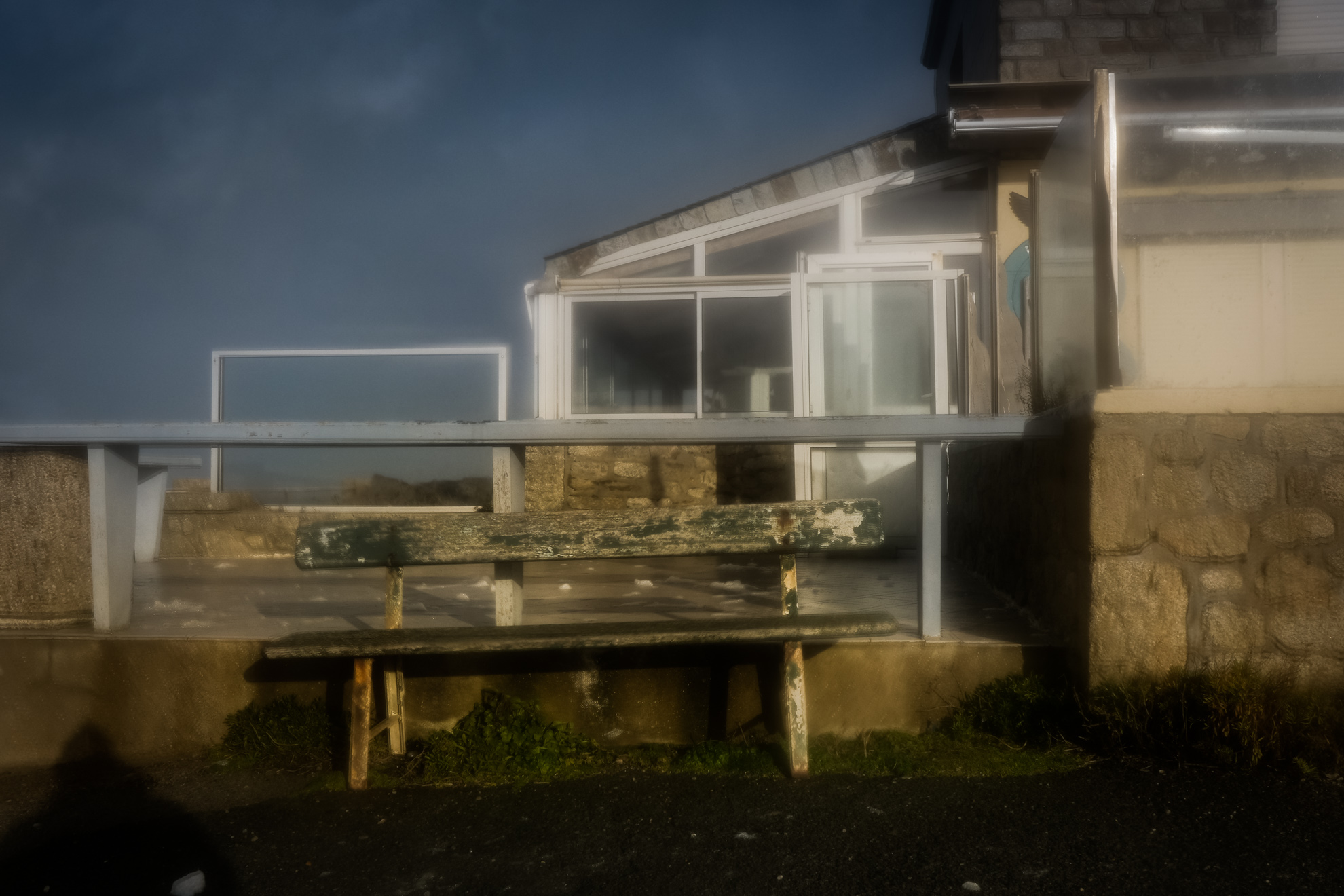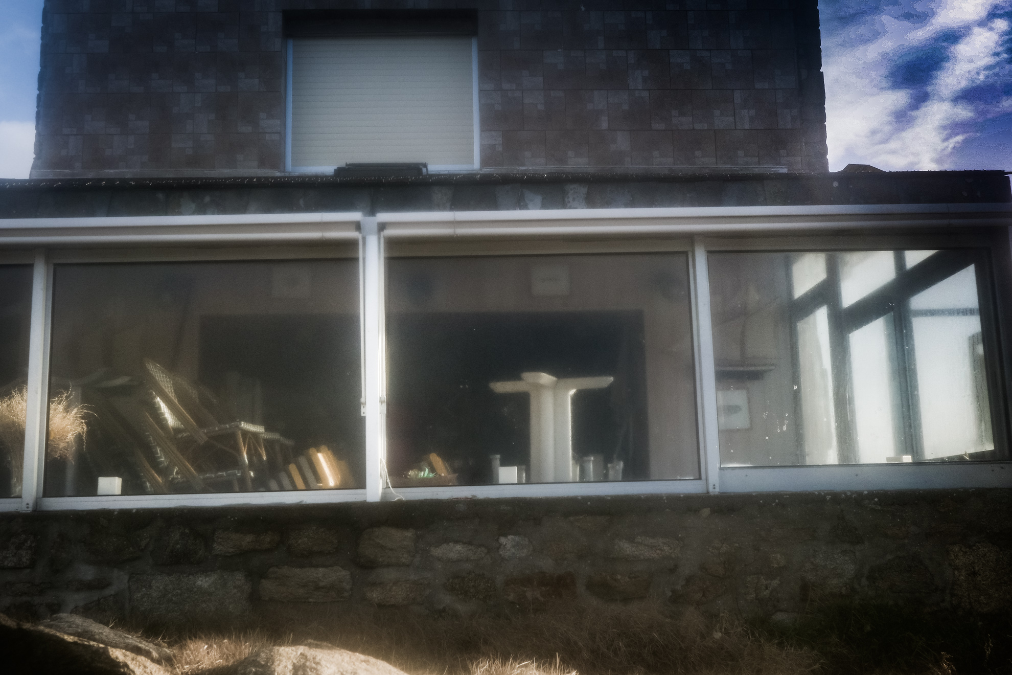 Ça me tarabuste. Décision à prendre, pulsion à laisser grandir, puis ouvrir avant qu’elle se rétracte, ou bien laisser filer. Ça ferait un tour du monde oui, mais en petit, il y aurait tant d’endroits supplémentaires qui auraient pu venir, sur d’autres routes. Liste des coins de table où tu as posé ton ordinateur, et relever le regard. Inventaire des banquettes, des décos, des sonos, des télés au plafond. Quant à celui-ci, photographié hier, terrasse vide et volets clos, derrière les vitres les chaises pieds en haut renversées sur les tables, pas trop inquiet : si l’été rouvre les rideaux, tout reprendra très vite et les vagues seront toujours aussi belles. Celui-ci oui, mais pour quarante entrevus ces trois jours, et l’attention qui semble malgré toi les attraper comme on coche sur une liste, pas sûr que le processus soit réversible. Puis, pour chaque lieu, imaginer les vies associées, les virages pris. Sans doute un peu pareil pour les collègues écrivains, d’ailleurs, le non réversible. Tu as au moins cette permanence du web, où on ne demande à personne, et même ta propre collec de livres. Pourtant, là, l’idée du grand livre bistrots, ce serait le faire avec un appui du dehors, comme autrefois. Se lever un poil plus tôt demain et attaquer comme ça, 50’ pas plus, juste pour voir où ça embarque ? Vous dirai.