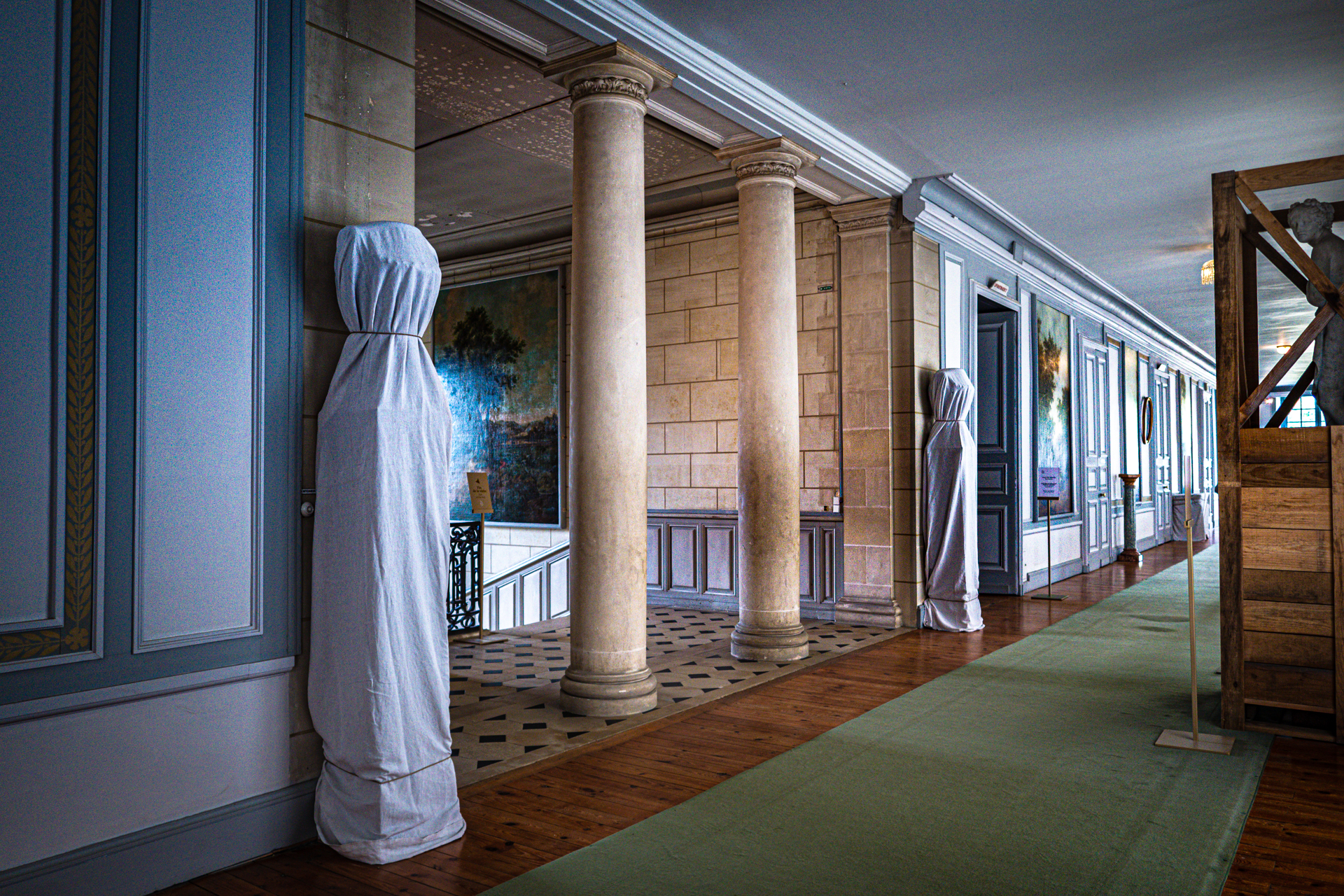 Hier j’ai fait un texte long et chargé de plein de liens, aujourd’hui c’est le contraire. Juste le mystère de ce lieu d’exposition où ce qui s’exposait c’était l’absence d’exposé. Attention je n’ai rien contre : ni contre le conceptuel (il y a une très belle discrète salle de cadres vides au Louvre), ni contre l’interrogation qu’on porte alors sur lieu et lumière. D’ailleurs c’est un des plus beaux lieux de France, peut-être vous reconnaîtrez. Et tiens, ça fait qu’apparemment on passe les 18 000 photos en ligne dans ce journal, commencé entre 2005 et 2007, calculez la moyenne par an, ce n’est pas si déraisonnable ? Sinon, c’était un bon exercice photo (Olympus 12 f2 sur le GH5).