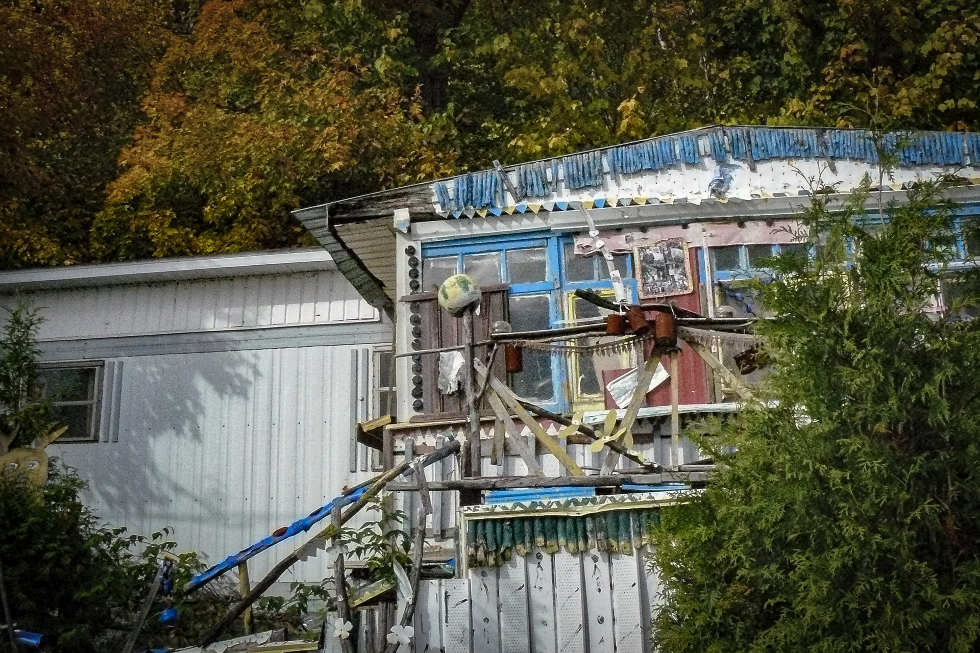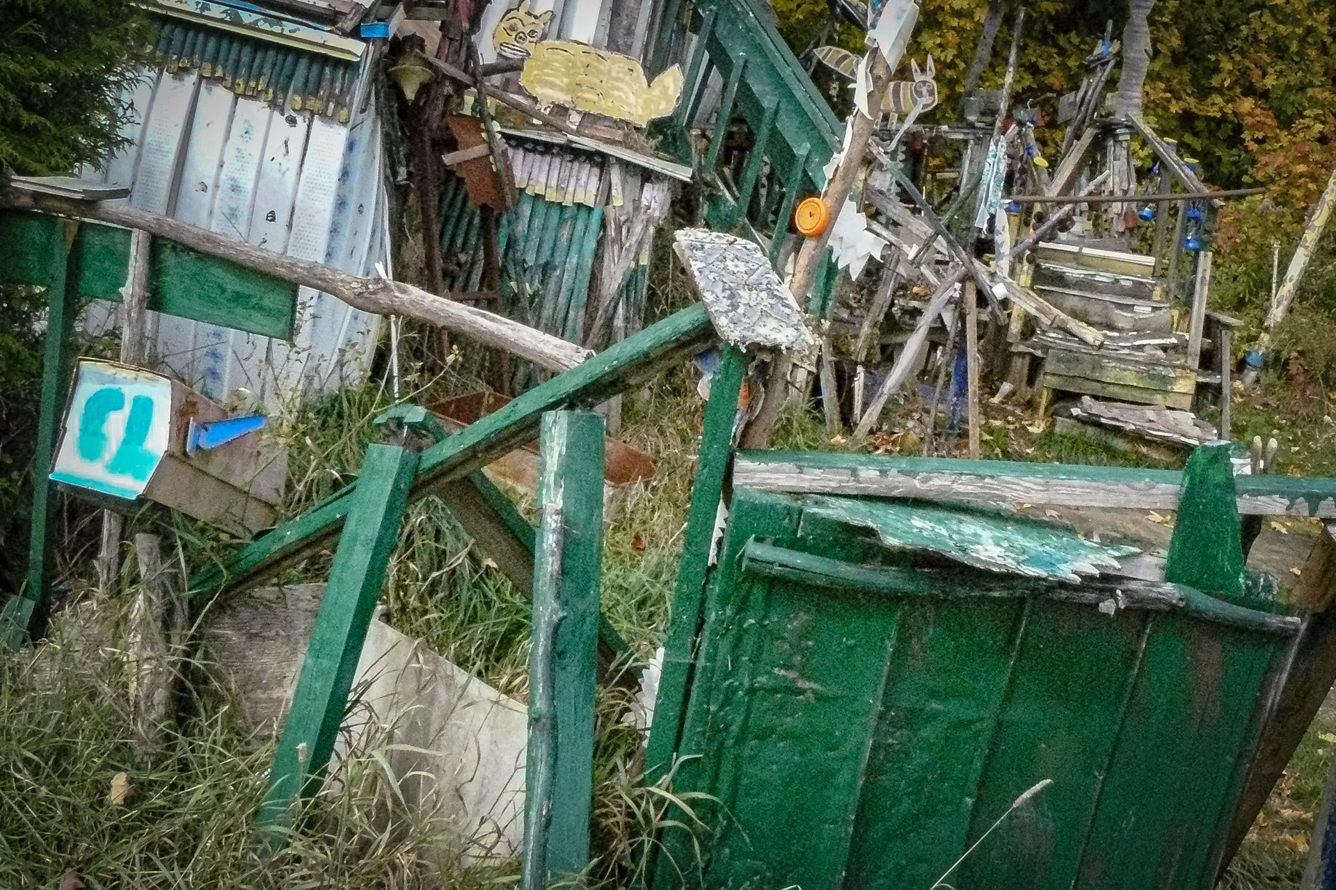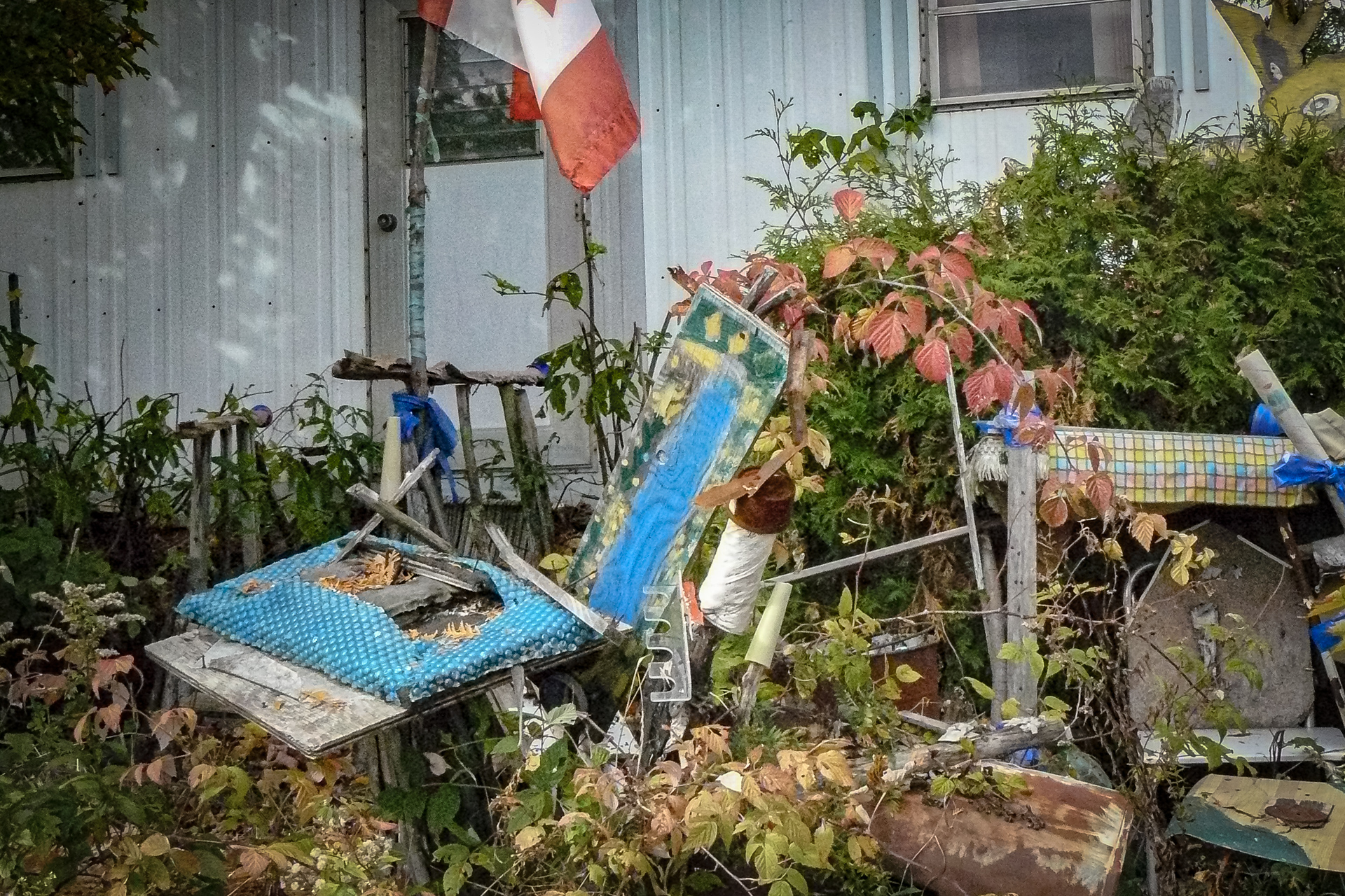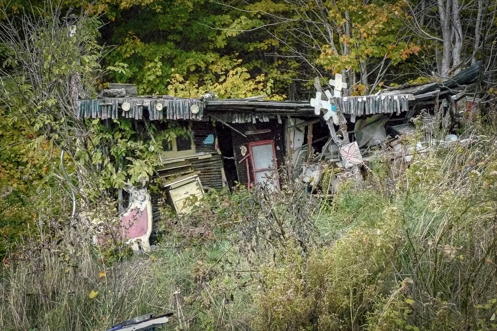 En tout cas c’est respectueusement qu’on suit la track, en longeant ces cabanons (notre mot du sud convient sans doute mieux), où s’illustrait comme souvent un artiste de l’art brut.