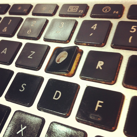 8 février 2013, par François BonDepuis assez longtemps, je travaillais à table sur mon MacBook Pro 13" complété d’un écran externe, récemment agrandi (les yeux n’y voyaient plus rien) en passant à la dalle Mac 27". J’avais les commandes et les menus, plus twitter, sur l’écran du Mac, et les fichiers texte, tableau, images ou compo sur la dalle. Il y a 10 jours, le e – dont la touche était progressivement devenue transparente – a lâché. Je suis habitué, c’est toujours le e qui craque d’abord, et dans la durée de vie du Mac (…)