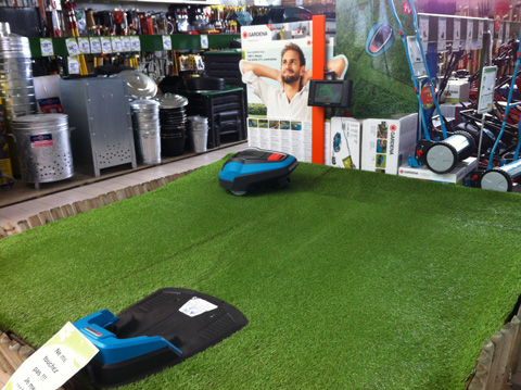 25 avril 2012, par François BonDans ce raid samedi à la jardinerie de la zone sud (je ne jardine pas, mais y avait quand même des trucs à acheter), déclenché aussi l’iPhone sur cette tondeuse rechargeable qui marche toute seule dans votre jardin (pour vérifier que ça marche, passer la souris sur l’image). J’avais déjà vu ça pour des aspirateurs. Les agriculteurs de la Beauce devraient s’en munir pour leurs céréales. Enfin là, sur un faux gazon de plastique, ça marche très bien, effectivement, et le mec derrière ben il (…)
