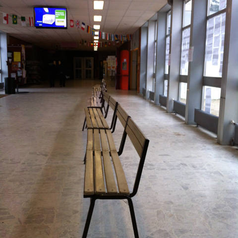 25 février 2012, par François BonLa fac de Poitiers a beau être une fac toute petite, le hall est une agora vivante – on dirait qu’à la cafétéria se trament plus de choses que dans nos cours (ce n’est pas vrai – la preuve par ce texte : Innocence, à partir des équilibres narratifs d’Enfance de Nathalie Sarraute). Donc il y a toujours à voir, dans le hall, des tables, des stands, des signatures, des affiches. Là, aujourd’hui, bancs en long. On les voit toujours regroupés par deux ou trois, ou au moins posés contre le mur. Je (…)