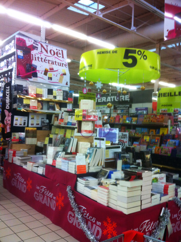 1er janvier 2012, par François BonGueule de bois pas moi, la soirée d’hier a été sage. Mais, dans l’apnée ravitaillement hier matin, cette gondole posée en avant au supermarché pour aider à vider les stocks des succès de l’automne. La pancarte remise 5 % comme si ce n’était pas partout le cas (par contre, silence sur la remise que touche le groupe Auchan sur ses achats en gros de si peu de titres référence : avantage pour eux de la loi Lang, et son paradoxe : c’est tout bénef par rapport aux libraires dont la remise est la (…)