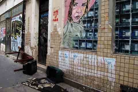 14 janvier 2012, par François BonDevant l’hôtel de la Paix muré, une table avec seulement trois pieds (le quatrième posé à côté), un poste de télévision, une valise ouverte, un tapis. Cela constituerait une allégorie du monde, comme les pommes de Cézanne. Un peintre ne s’installerait pas avec son chevalet, là où l’appareil photo numérique attrape et la crasse et l’instant. Le peintre est venu, cependant. Mais là où j’emporte avec moi l’image, lui l’a laissée sur les carrelages du mur. Sur la plaque enlevée (l’inscription (…)