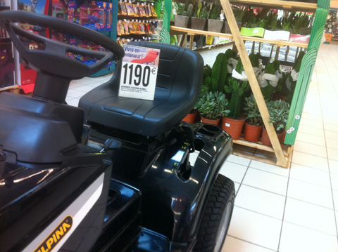 27 septembre 2011, par François BonJ’ai trouvé ça très beau, ce matin. Une tondeuse à gazon noire comme une Ferrari rouge, avec pneus qui sentent le caoutchouc synthétique et un volant de course. Et puis derrière, la grande palette à traîner les pots de fleurs. C’est pas si grave, que t’aies pas de gazon à tondre, ou que t’habites en immeuble : tu prends ta Ferrari tondeuse Alpina, t’accroches tes pots de fleur dans la remorque – et dehors. C’est le slogan : VIVRE EN EXTÉRIEUR, et ça ne coûte que 1190 euros. Pour ce prix-là, (…)