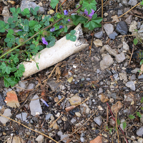 Dans ces cimetières de village où on entre parce que l’église est belle, et qu’ils sont restés accrochés à elle, à l’écart, retraçant des pans de l’histoire commune par les dates, les médaillons des images, je ne peux pas m’empêcher de photographier ces fragments d’os qui remontent du sol pierreux, comme par une loi naturelle de recyclage infini. Morceaux de crânes, fémurs ou vertèbres, ils s’associent à la minéralité du sol et des ciels, ou des fleurs imputrescibles. On appelait ça les (…)
