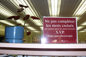 30 octobre 2009, par François BonN’ai pas pu m’empêcher de photographier cette annonce. Pourtant, les mots-croisés me semblent faits pour ça : qu’on écrive dans les supports qu’on lit. Dans les salles d’attente dentistes médecins, ils sont toujours remplis en partie. Ou bien la page arrachée, pliée et mise dans la poche (pas par moi ou pas pour moi, je ne pratique pas : il me semble que – par définition – ayant été rédigés pour une solution qu’ils contiennent, il ne m’importe pas de la chercher). Faire des mots-croisés sur (…)