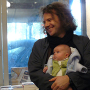 26 septembre 2008, par François BonOn n’ose pas trop enlever les enfants des bras de leurs parents, mais quand même toujours un moment où ça fait du bien de les tenir un peu, manière de faire connaissance : d’ailleurs, elle ne s’en est pas sentie plus mal, une réaction très rabelaisienne après quoi les deux bras se sont tendus à l’horizontale, poings fermés, regardant sa mère.
