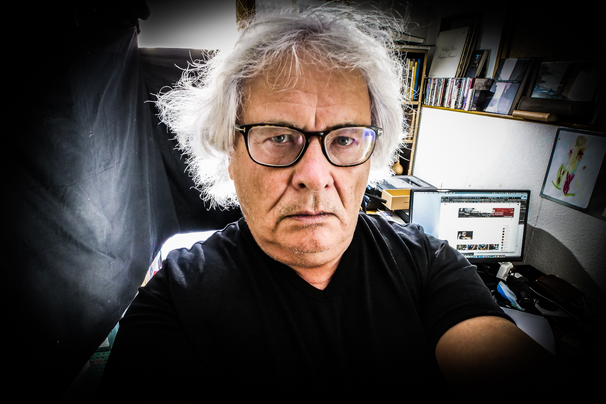 Chaque soir, un autoportrait est ajouté aux précédents. Cette rubrique est uniquement accessible via le site, et non relayée sur les réseaux sociaux. Elle a commencé le 3 août 2020 dans la condition intérieure de se prolonger jusqu’à impossibilité physique avérée. Matériel utilisé actuellement : GH5 + Sigma 16 1.4. L’évolution du geste et du contexte de représentation sera un élément de réflexion aussi important que l’évolution du sujet même.