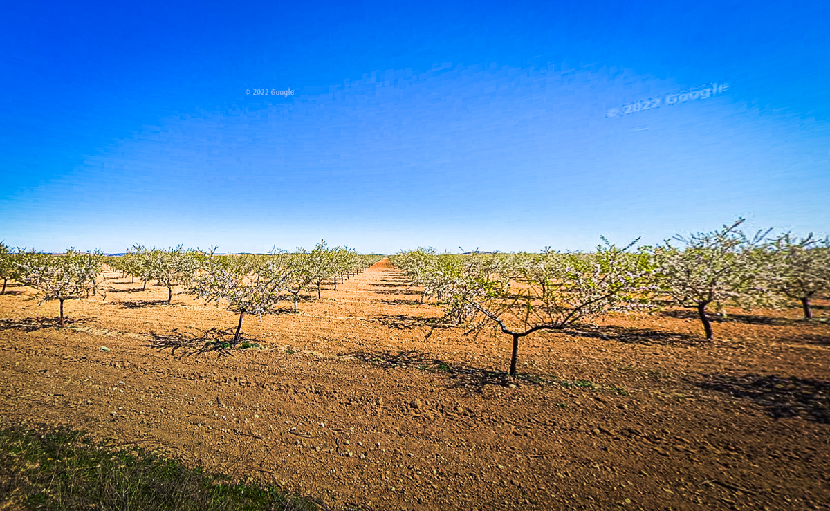 28 août 2024, par François BonMême en conduite autoroutière, c’était une joie de traverser ces paysages dont Cervantès a fait légende. À preuve qu’on y est, le long de la E5 : à gauche l’hôtel Dulcinea (photo 1), à droite les moulins à vent (trois, photo 2). Mais quand même, quand s’engrènent les heures, comment sur la terre rase de rase ce sont des kilomètres d’oliviers en monoculture exclusive. Sur GoogleMaps, on peut multiplier les copies écran, les échelles : les arbres font de beaux dessins abstraits (photos 3 à 7). (…)