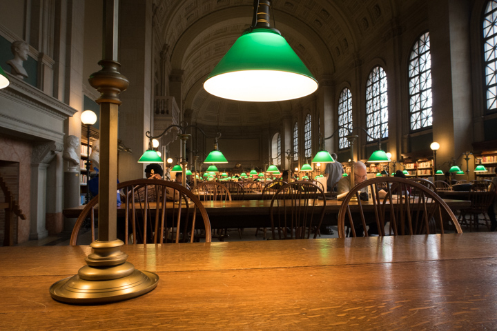 À Boston, comme dans tant d’autres villes américaines (Toronto), la bibliothèque est maison ouverte. Certainement une maison des livres : ils sont sur les galeries, dans la hauteur des rayons. On peut retirer ce qu’on souhaite lire, le catalogue est géant. Mais dans les salles de lecture, la plupart de ceux qui sont assis ont apporté leur propre ordi. Les différents postes d’accès au web sont occupés, en particulier dans la grande salle qui leur est réservée. On passe derrière les gens : (…)
