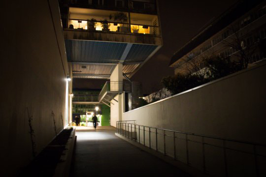 16 janvier 2014, par François BonQuand on descend du RER à Cergy Préfecture, on sort naturellement par la grande entrée, un escalator vous mène à l’esplanade qu’on traverse en diagonale, et on se retrouve sur le chemin de l’École. Mais si, juste à la sortie des portillons du RER, vous prenez par le tout petit passage qui donne sur le souterrain des autobus, que vous faites dix mètres sur un trottoir étroit, un autre boyau avec escalator vous mène directement à ce point qui convoie vers l’École. Ce n’est pas pour la minute (…)