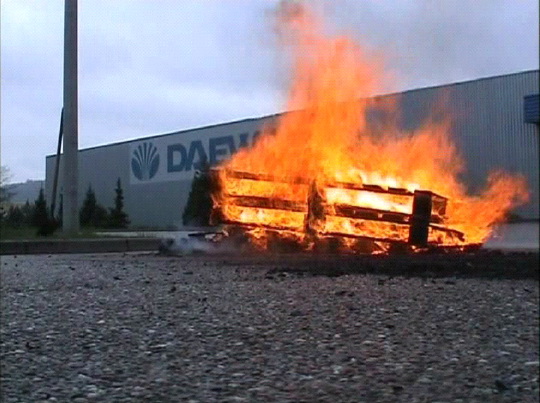 Daewoo Fameck, occupation de l'usine, les feux de palette devant le portail. Villers, la chaîne de fabrication des fours à micro-ondes est condamnée. Dans mon propre livre, il y a un hommage à Barbara G., responsable syndicale, et l'écoute, tendue et grave, pendant une de ses ultimes prises de parole... |