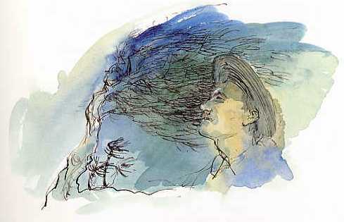 elle assurait ton lourd chapeau de paille ou de soleil,