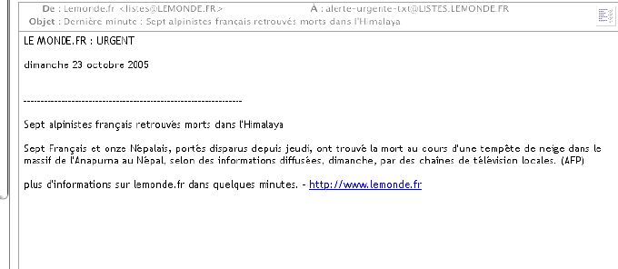 On nous offre d’autre part des alertes e-mail sur les événements d’actualité importants, mais qui en juge et comment ?