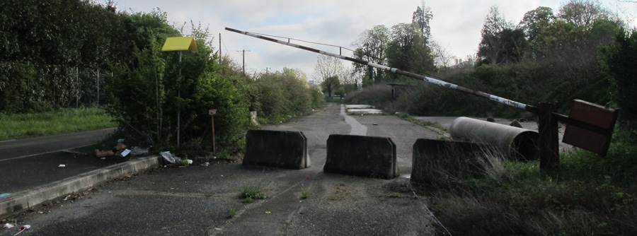 Ce soir et demain je mettrai en place d’autres éléments pour une description du Christ de Saclay, lieu emblématique et névralgique de la transformation urbaine qu’il enregistre dans toutes ses strates. On touche l’angle sud-est du Commissariat à l’énergie atomique, ville dans l’absence de ville et zone protégée. D’où le développement de ces lieux intermédiaires, et le fait qu’ils deviennent à leur tour lieux d’usages, en cela même qu’ils sont traités comme hors du monde (et non impasse). D’où ce relevé des sols, pratiqués sur cinq mètres. Mais c’était un vrai décor de film ce recoin, j’ai fait 2 vidéos et au moins 80 photos, la suite à ce soir.
