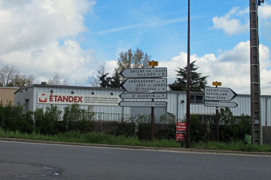 Le reste est pacotille. Un garage Renault, un petit garage carrosserie mécanique, un marchand de vélos : mais où trouvent-ils leurs clients ? La bourgade de Saclay est à l’arrière, mais pas de rue qui y mène directement – on est ailleurs, on est dans un lieu qui n’a pas d’autre clôture que lui-même, le Christ de Saclay.