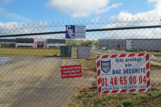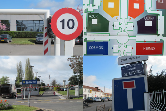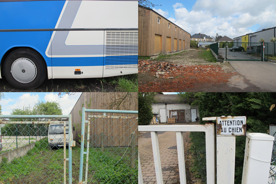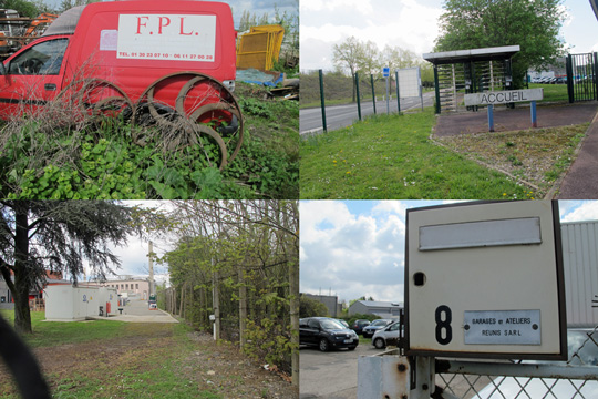 Sur les vues aériennes, ce qui frappe, c’est l’ensemble déstructuré qui vient s’accoter jusqu’au garage Renault. Quand on contourne à pied, rien à voir, grillage devant, haie végétale derrière : les camions Nicollin (M. Nicollin, dont la fortune vient du ramassage des ordures de Montpellier, est propriétaire là-bas du club de foot : c’est donc avec l’argent de la communauté d’agglomération de Saclay qu’il entretient là-bas ses danseuses au ballon rond ?) dans leur dense ballet révèlent la nature de l’enclave – centre de tri de déchets non ménagers. Et ce serait intéressant aussi d’en savoir les coulisses, comment s’établit le tri différencié, et quels problèmes posent les matériaux et déchets qu’on a à retraiter discrètement ici.
