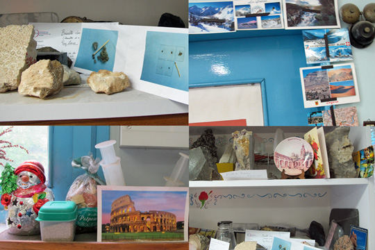 Parmi cette vie qui rejoint les machines, les étagères, les murs, il y a aussi des cartes postales : elles viennent de très loin, certaines sont là depuis longtemps. Les géologues voyageurs savent ce qu’ils doivent à Valérie Godard. Est-ce qu’elle les a accompagnés, une fois, là d’où proviennent les échantillons qu’ils lui ramènent ? Ce n’est pas le genre de personne à se laisser démonter dans la conversation : « Oui, une fois, à la souche. Vous avez vu la souche ? » Moi je pensais que cette pièce entre machine et microscopes, où passent des roches de toutes les montagnes, grottes, volcans de la planète, l’auraient incitée à partir là où eux nous disent aller, avec les sacs au dos.