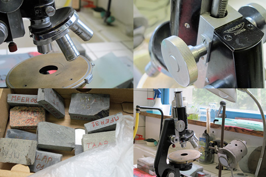Ce sont les grands souvenirs et les prières ou la gloire des minéralogistes que nous rencontrons, ces collectes d’échantillons, parfois 30 ou 40 kilos dans le sac à dos au retour. « Ils en ont bavé pour rapporter ça. Ils ont marché parfois 3 jours dans la montagne, ils n’auront jamais plus l’occasion d’y retourner, et parfois juste un échantillon de quelques milimètres... Il faut que le géologue ait totalement confiance dans le travail du litho-lamelleur. » Les volcanologues ou les géologues identifient leurs échantillons avec les coordonnées GPS, et chaque fragment est immatriculé de leur façon, la lame mince reprend ce code. Ce que les minéralogistes appellent « l’optique cristalline », avec l’emploi de la lumière polarisante, est une science qui s’est amorcée dès le XIXe siècle. « Une photographie de l’intérieur des roches, et rien qui remplace ça », dit Valérie Godard.