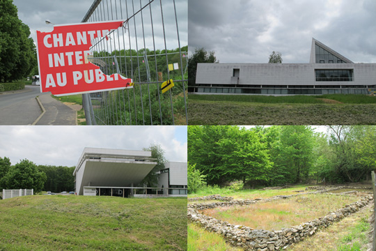Elle eut sa splendeur, ses caves, silos et toits entre le 2ème et 3ème siècle de notre ère, mais une partie de ses fondations date du 1er siècle. On l’a exhumée, entre 1994 et 1998, pour tracer ce chemin d’accès qui longe Supelec. Cela veut dire que partout ailleurs, dans les champs, il y a ce vieux tissu de l’occupation humaine, en ce point protégé parce que surplombant la vallée, et à proximité de la puissante Lutèce qui devait bien avoir 6000 à 8000 habitants (je n’y connais rien, je sais qu’au temps de Rabelais c’était dans les 14 000, merci, ô visiteurs, de préciser si vous savez !) – on a en France ce dispositif dit des fouilles de sauvetage, qui ont entraîné l’éclosion d’une nouvelle discipline, l’archéologie urbaine (en opposition à ce qui serait, ici même, l’archéologie des champs ?). En général, il faut aller assez vite. Dans les régions à forte densité archéologique, Nîmes ou Marseille, c’est l’aubaine de l’ouvrier découvreur, à qui le patron du chantier remet illico une belle somme cash pour qu’on procède au bétonnage ou recouvrement immédiat parce que marre. Reste ce qu’on a su en faire un peu partout, la galère romaine exposée dans le Centre Bourse de Marseille ou même le sous-sol de la médiathèque Poitiers... C’est à condition de pouvoir les scénographier, ou de la majesté dont parfois le vestige se dote. Ce n’est pas le cas ici, où la continuité serait plutôt à établir avec les 4 fermes encore en service, et dont la forme carrée n’a pas tant varié.