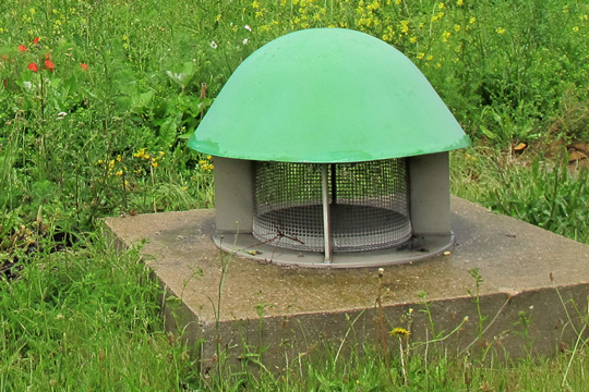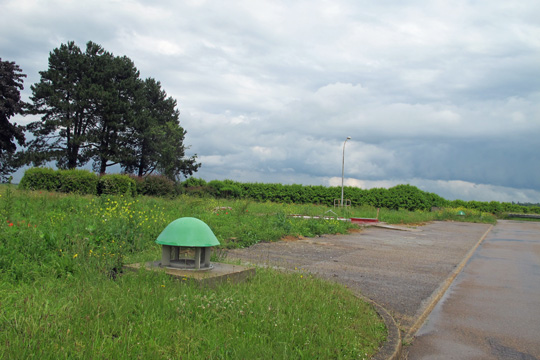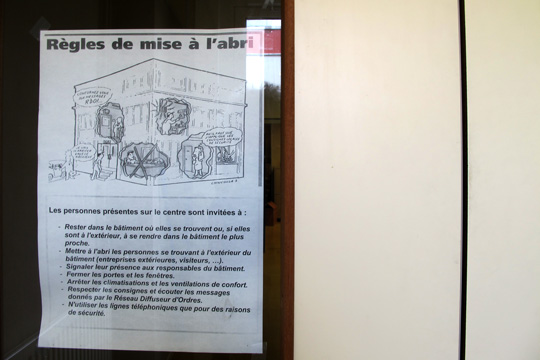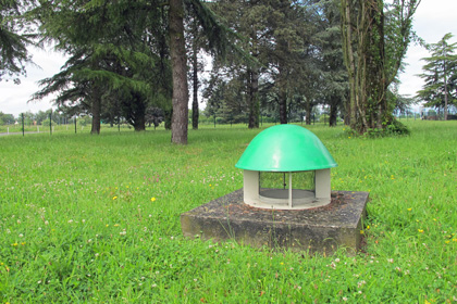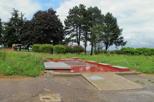 Cela ne gêne pas la végétation autour. Parfois, on ne maîtrise plus la croissance du champignon atomique, nous a-t-on expliqué, alors il faut l’éradiquer. On enlève la protection de métal et on explose. Il reste cet épanchement rouge de sang, qu’on lave à grande eau, puis on cimente, voir photo.
