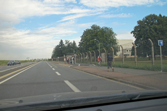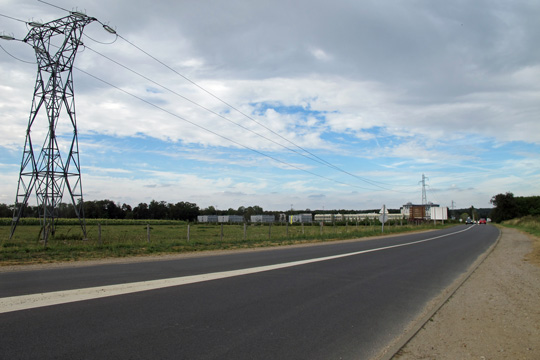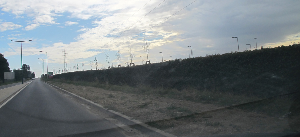 Le paradoxe du plateau de Saclay c’est d’être une zone rurale protégée (sauf enclaves) dans une zone d’extension dense de l’hyper-ville (on est à 24 kilomètres du BHV, ce qui est un repère plus commode que Notre-Dame), et donc que les portions de route toute droite qui le parcourent en étoile, de rond-point à rond-point sont des coupes franches utilisées comme raccourcis par tous ceux qui vivent et travaillent tout autour. Donc un goulet d’étranglement aussi bien, mais une sorte de fonction vitale pour l’irrigation de la ville : énormément de voitures et rien à voir, puisque les enclaves sont à l’écart. Plus de 20 000 voitures qui passent ici tous les jours : autant de lecteurs à réveiller, griser, déranger ?