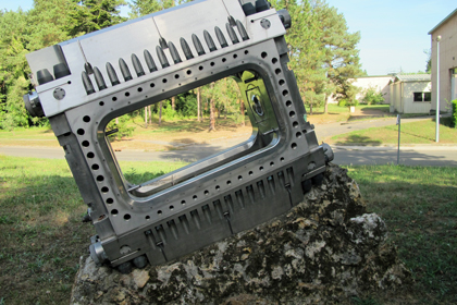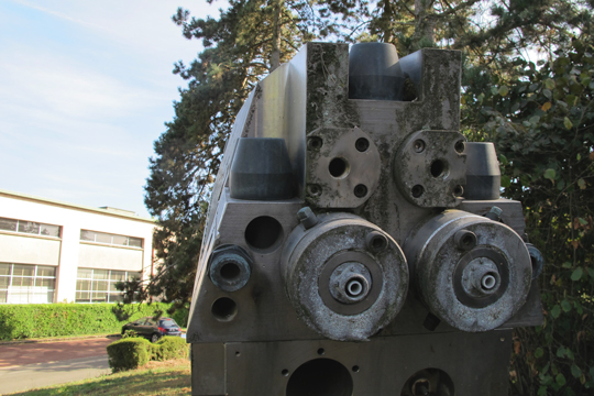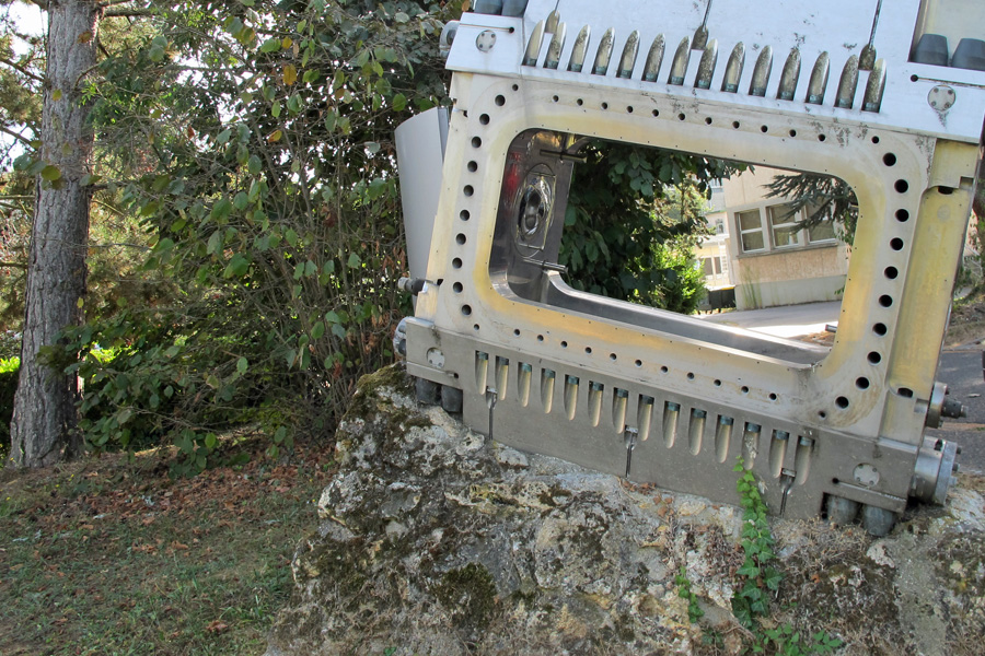 Ce qui est intéressant, ici, c’est la décision et le geste (l’artiste collectif est anonyme, mais anonyme aussi le collectif qui décida, plutôt que de ferrailler l’objet, de l’enclaver sur son socle, et que ce soit fait à l’oblique. C’est cela, peut-être, plus que le fonctionnement des anciennes chambres à bulle, qu’il aurait fallu mettre sur panneau explicatif.