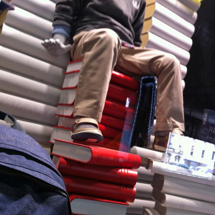 À vous les beaux livres reliés blanc, en papier, tous de même épaisseur. À vous la vie assise.