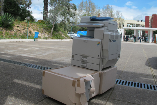 Alors on s’était saisi des photocopieuses, et, bien au contraire, on les avait installées là, devant les bureaux, en pleine cour.