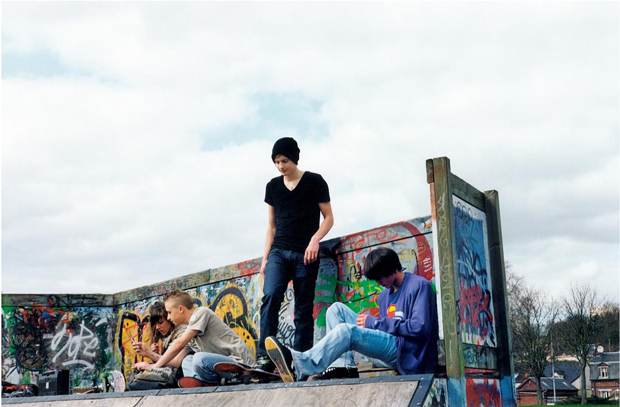 Regardez la deuxième image, les corps : il faut du temps pour comprendre, l’élévation, le risque. Rien qu’une rampe de skate, et pourtant : on s’élance ici hors de sa condition, saut hors la gravité, défi à l’équilibre, dans le déséquilibre du monde et l’immobilité paradoxale qu’ici il instaure. Ici, dans la lumière du photographe, les mains, le ciel, les postures, tout éclate.