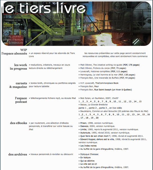 10 février 2014, par _ tiers livre invite...structure de l’oeuvre narrative web, lecture trouée par l’hypertexte, décryptage et ouverture par Gilles Bonnet dans "D’un monde en bascule"