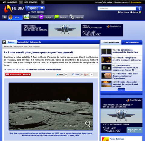 "la lune serait plus jeune qu’on ne le pensait" – source : Futura Espace