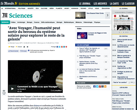 13 septembre 2013, par François Bonpour la première fois, une sonde humaine échappe au système solaire – source : Le Monde