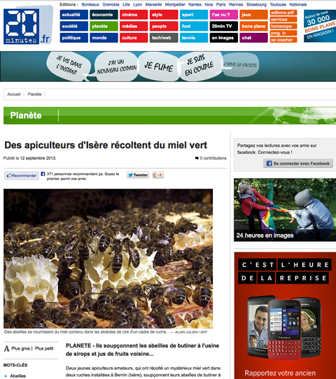 13 septembre 2013, par François Bonde la proximité des ruches et des usines – source : 20 Minutes