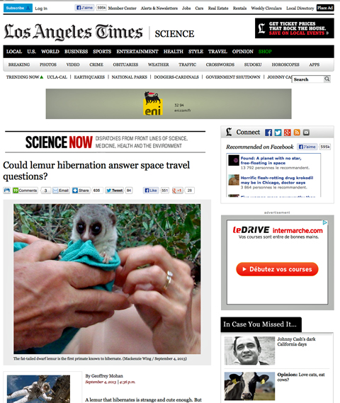 8 septembre 2013, par François Bonce qu’on apprend de l’hibernation du lémurien nous concerne-t-il ? – source : L.A. Times
