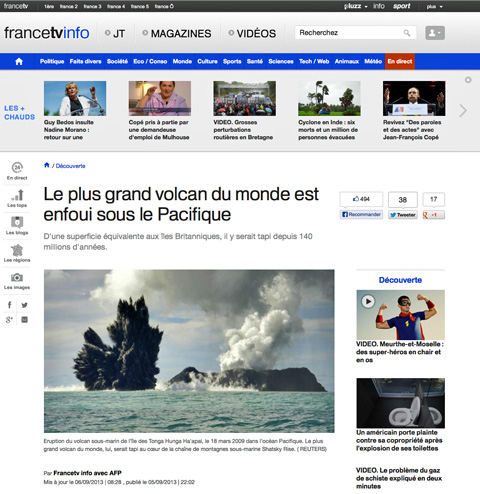 6 septembre 2013, par François Bonle plus grand volcan du monde est enfoui sous le Pacifique – source : France TV