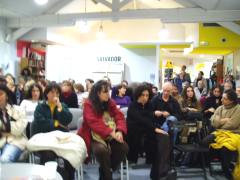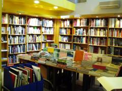 Deux "journal images" la même semaine c'est beaucoup, mais après ça va ralentir, et c'est devenu presque un rituel de retour, là directement dans le train du vendredi matin. Ombres Blanches, c'est une librairie qui a grandi depuis un local minuscule, mangeant tout un quartier par l'intérieur, rejoignant les bulles successives de l'agrandissement par des passages creusés dans les murs: c'est un labyrinthe, une grotte, mais il n'y a pas de plus belle métaphore pour le livre, alors on va de salle en salle comme à toujours découvrir une autre facette du pur fantasme de disposer de tous les livres. La dernière fois, quand j'étais venu pour Rolling Stones, une biographie, on entrait encore par la petite librairie des débuts: Christian Thorel a racheté la boucherie qui voisinait, et donc une fois de plus c'est une librairie multipliée que je découvre. Avec une belle audace: dans cette première pièce d'accueil de la librairie, on a affaire aux livres sur la langue, et sur les auteurs, essais, dictionnaires, questions de style. Plus d'une centaine de personnes pour la rencontre du mercredi soir, avec Franck Magloire (auteur du très beau Ouvrière, éditions de l'Aube, 2002), ça m'impressionne. Le lendemain, je prends le temps d'explorer, toujours quelques découvertes à faire, en particulier côté livres d'art, sur l'art, avec l'art...