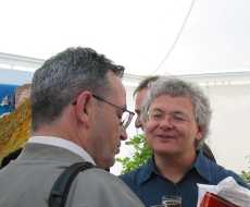 alors ici, en bonne complicité, c'est juste du repiquage, celles où je suis un peu plus à mon avantage que chez elle... il s'agissait de la remise du prix Louis Guilloux, vendredi 28 juin, à Saint-Brieuc c'est Yvon Le Men qui a d'abord pris la parole en improvisant un hommage à Mécanique, dont il a lu des passages Yvon, le "fils" de Nazim Hikmet, l'enfant de Lannion, celui qui connaît plus de 1000 poèmes par coeur, ce n'était pas de la triche, ni de sa part, ni de la mienne... plutôt un rendez-vous fraternel |