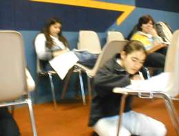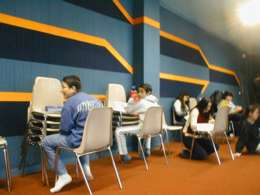 l'appareil photo-numérique fait partie du paysage, à la fin de la séance on télécharge tout sur le Mac et GraphicConverter projette les images en diaporama alétaoire, toujours une petite fête... le samedi 22 mars, 160 élèves d'une douzaine d'établissements investiront la totalité du Centre national dramatique, loges, foyer, salle de répétition, bar, escaliers, grand plateau, pour des prestations poésie, dans le cadre du Printemps des Poètes |