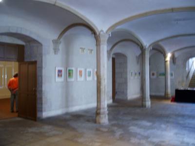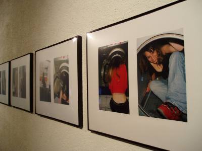le festival s'appelle "L'art d'être au monde" - Dominique Truco, qui le coordonne, a proposé à une quarantaine d'artistes d'investir les vitrines, magasins, ateliers, de la boulangerie au fleuriste, du garage à la pharmacie, ou comme Denis Montebello, l'agence immobilière - ci-dessous, Paul Armand Gette a travaillé avec des lycéennes et des étudiantes des Beaux-Arts de Poitiers sur le vieux lavoir médiéval, et du coup a investi aussi le pressing - et tout ça, lycéennes et machines à laver, est très à l'aise au tribunal d'instance !