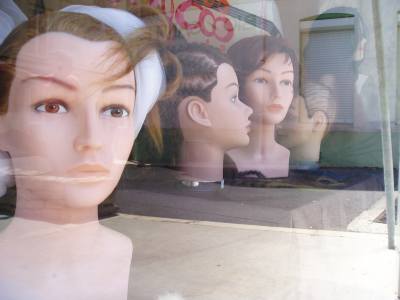 à signaler, même rue en face, magnifiques photos de paysage de Marc Denoyer - tout le rapport art / réalité en est déplacé, et dans chaque signe de la petite ville on guette désormais la main de l'artiste – on trouve formidable l'intervention plastique de la vitrine du coiffeur
