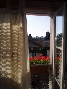 dans les moments de creux, l'auteur récupère à l'hôtel des Glycines (le seul du centre ville, il n'y a pas à se tromber) - le temps de brancher le Mac sur la prise du téléphone pour le courrier, ou les dernières corrections de l'article qui doit paraître lundi dans Libé, et pour se regonfler, rien de mieux que d'affronter la Gibson J30, pour une fois qu'elle a pu être du voyage - au loin par la fenêtre, par dessus la vieille maison très notariale qui aurait fait plaisir à Michel Chaillou (qui a publié Mémoires de Melle il y a une dizaine d'années), l'usine Rhône Poulenc qui m'impressionnait tant, enfant, lorsqu'elle profilait ses lumières de nuit dans les phares de la Citroën paternelle